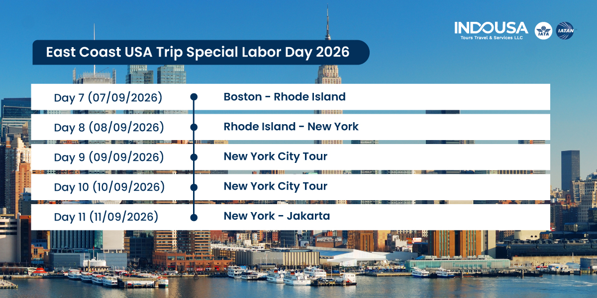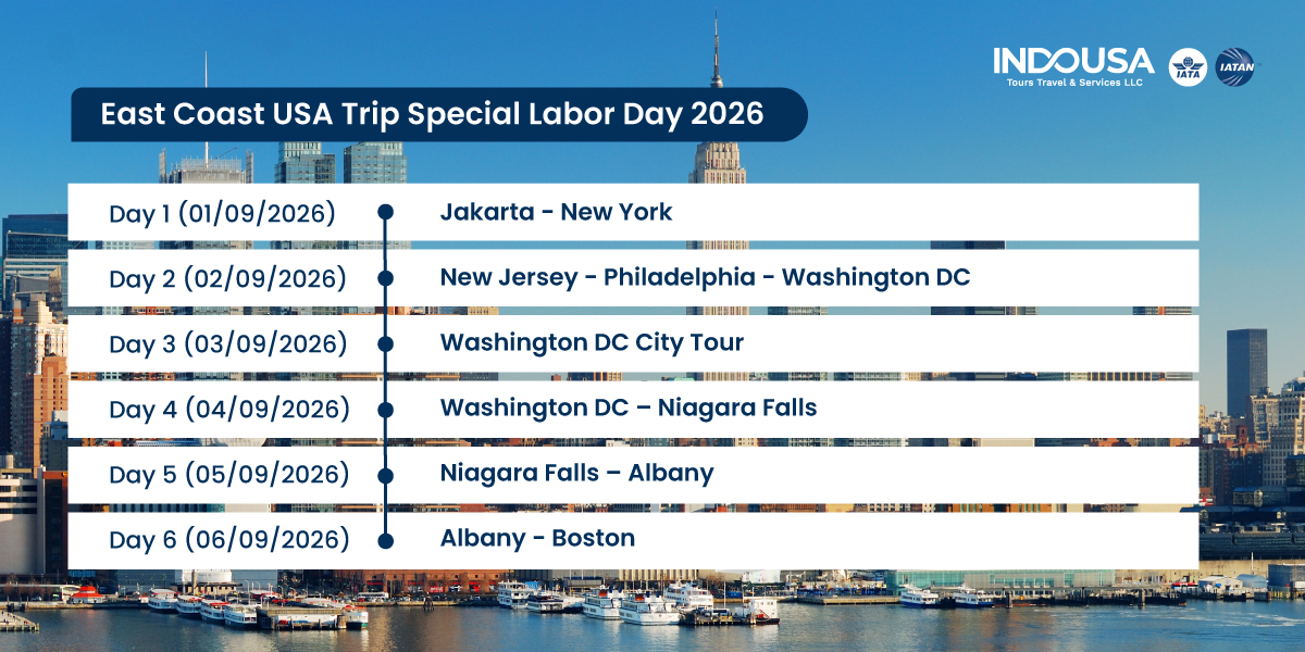 Join INDOUSA Travel on our East Coast USA Special Labor Day Trip 2026, a relaxing and enriching 11 days and 10 nights adventure from 1–11 September 2026. This special itinerary brings you to some of America’s most iconic destinations, including New York City, Boston, and Washington, D.C., where history, culture, and vibrant city life blend beautifully.